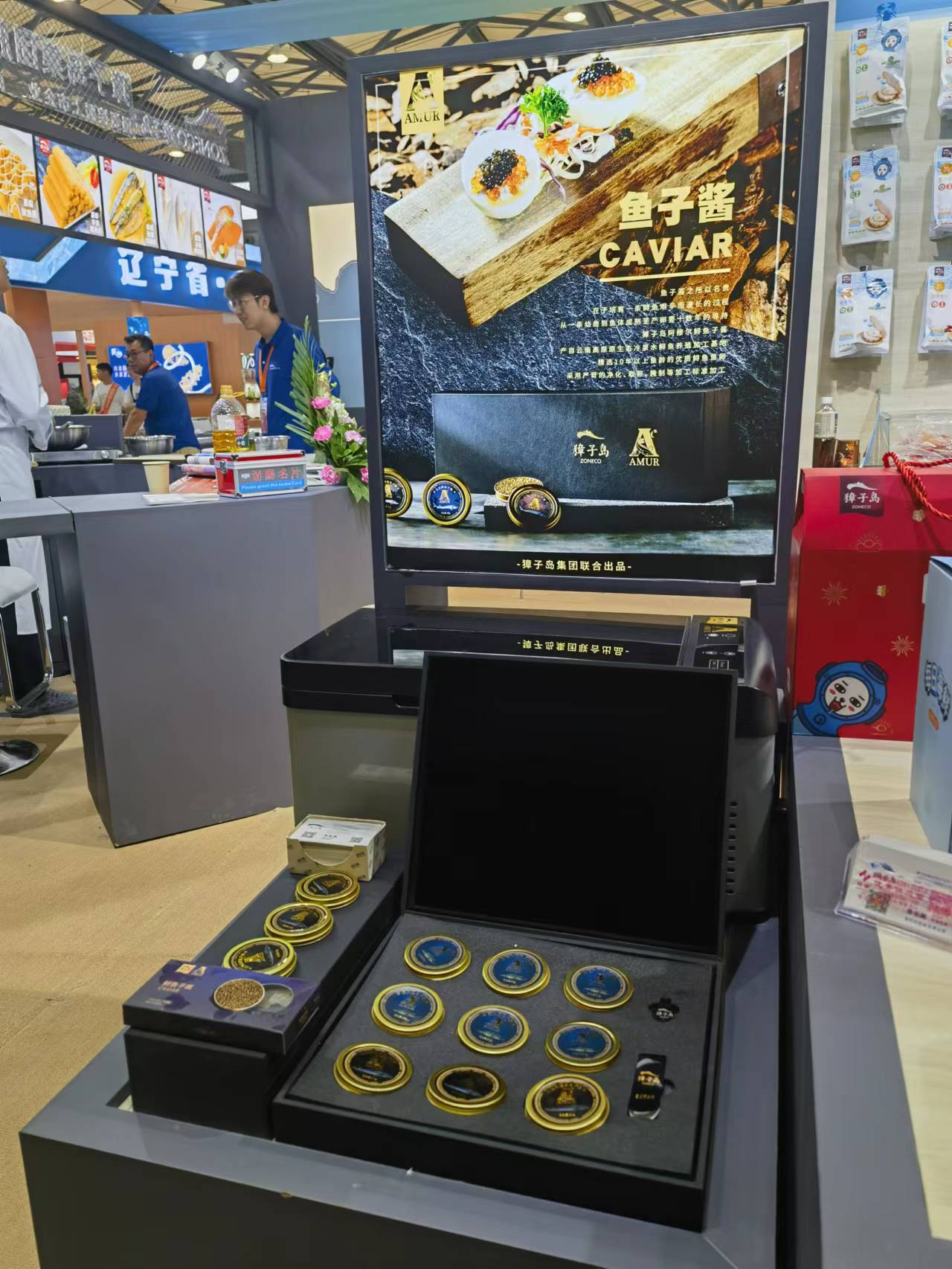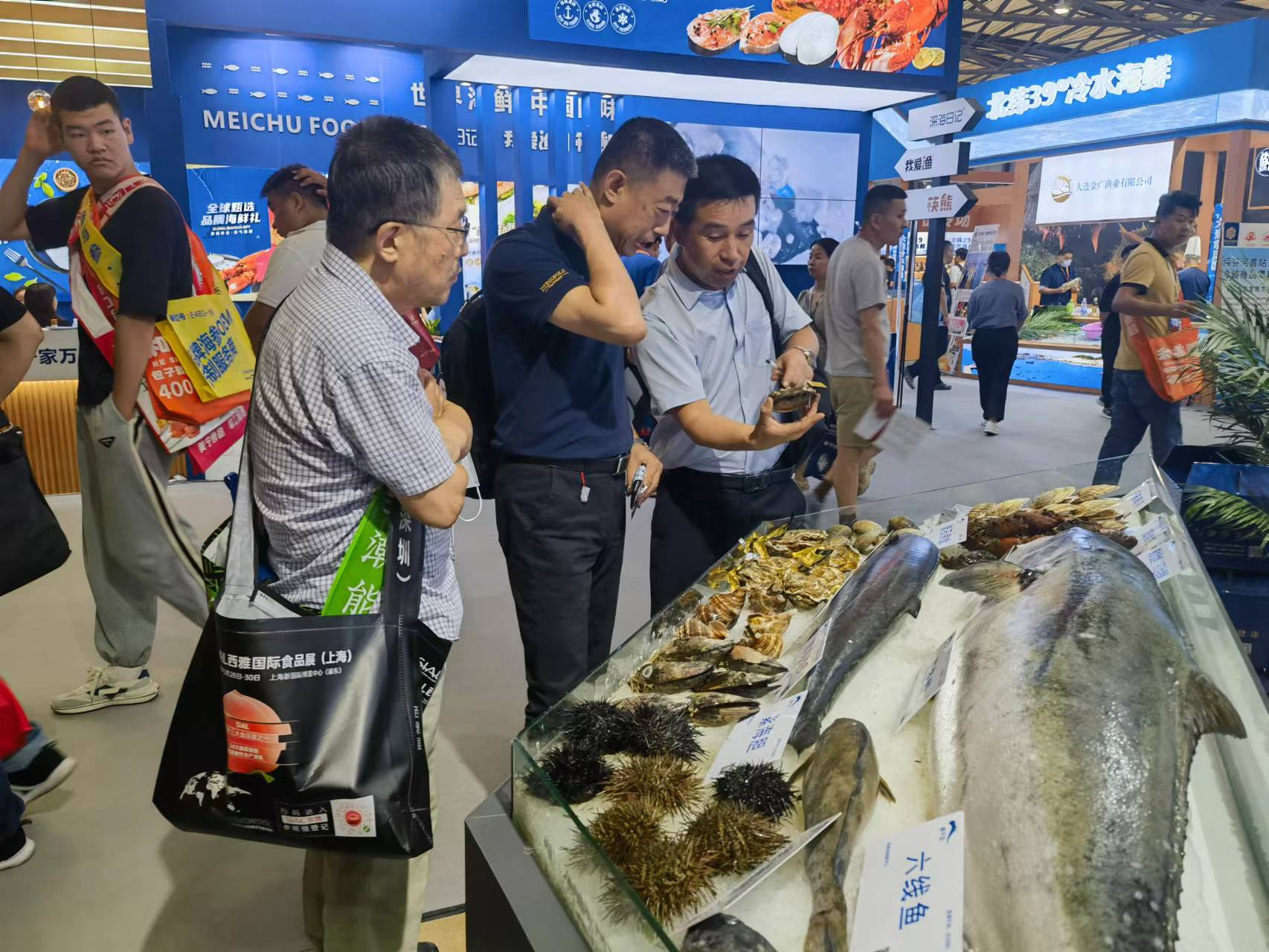 獐子島集團(tuán)展位前人頭攢動,琳瑯滿目的展品包括刺參系列、冷水活鮮系列、海洋預(yù)制菜系列、魚子醬系列等產(chǎn)品集體亮相。憑借著獐子島的高端品質(zhì)、品牌影響力和豐富品類,吸引了眾多客商、同業(yè)洽談合作及交流學(xué)習(xí)。