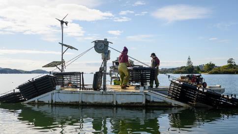 該系統(tǒng)能夠在每一米的養(yǎng)殖線產(chǎn)出50打(每打12只)的優(yōu)質(zhì)牡蠣,遠(yuǎn)遠(yuǎn)超過傳統(tǒng)每米僅10-15打的標(biāo)準(zhǔn)。在新西蘭,傳統(tǒng)的牡蠣養(yǎng)殖主要以棚架式為主,即牡蠣通過架袋和捆綁等方式固定在潮間帶的木架上。這種方法不僅需要大量的土地和嚴(yán)格處理過的木材,而且容易受到洪水等自然災(zāi)害的影響,導(dǎo)致牡蠣被沖走。此外,養(yǎng)殖過程需要頻繁的人工干預(yù),包括解團和分級,因此需要大量的勞動力。