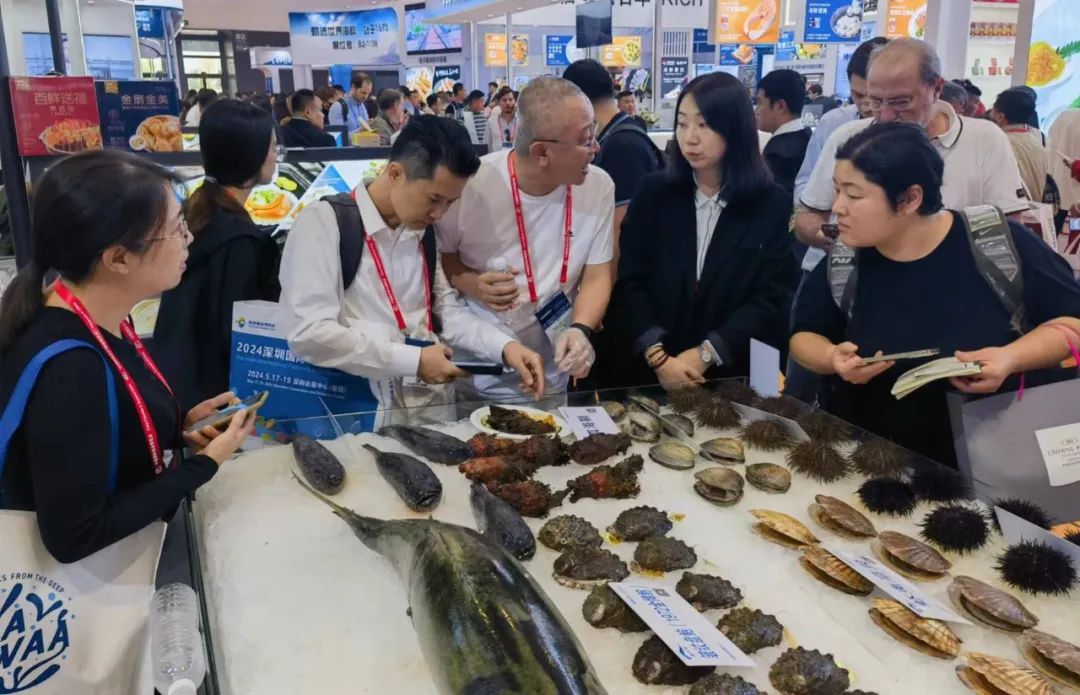 現(xiàn)場(chǎng)國(guó)內(nèi)外客商問(wèn)產(chǎn)品、詢價(jià)格、品美食絡(luò)繹不絕。獐子島集團(tuán)展區(qū)已連續(xù)多年成為漁博會(huì)最具特色與品味、最具活力與賣點(diǎn)的核心“商圈”。