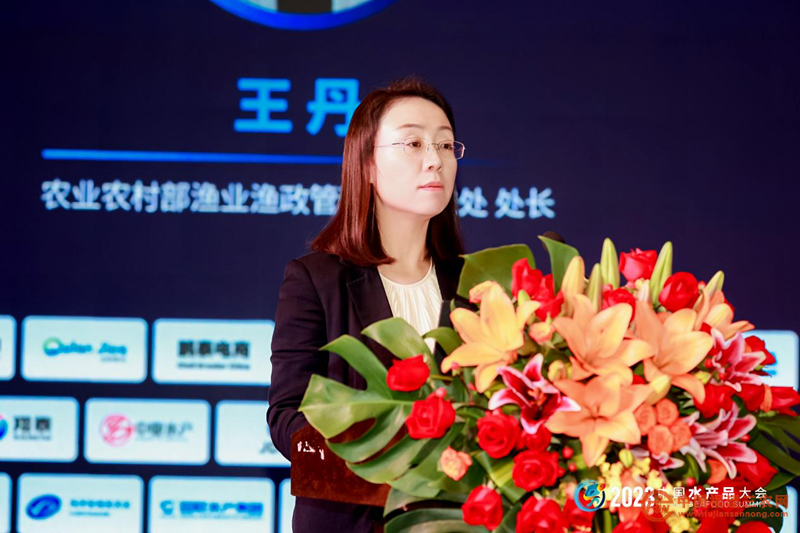 農(nóng)業(yè)農(nóng)村部漁業(yè)漁政管理局科技與市場(chǎng)加工處處長(zhǎng)王丹上臺(tái)致辭