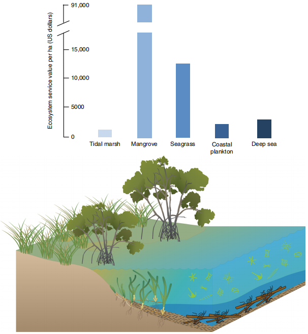 圖2 每公頃藍碳生態(tài)系統(tǒng)的經(jīng)濟價值估算