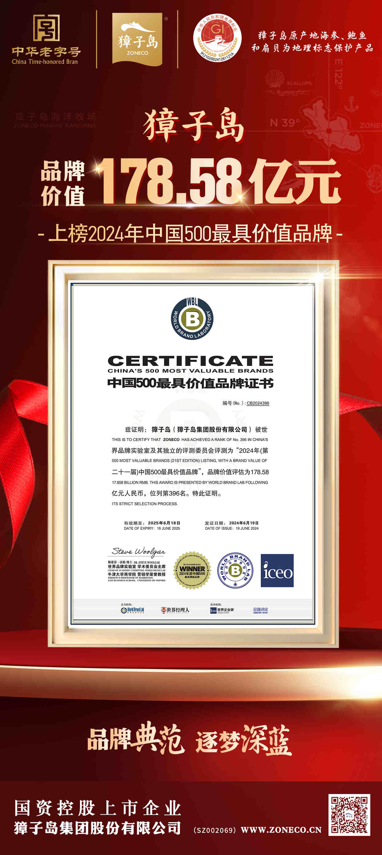 Lab)主辦的(第二十一屆)“世界品牌大會”在北京隆重舉行,會上發(fā)布了2024《中國500最具價值品牌》分析報告。在這份基于財務(wù)數(shù)據(jù)、品牌強度和消費者行為分析的年度報告中,獐子島品牌以178.58億元的品牌價值榮登本年度《中國500最具價值品牌》榜單,排名396位,展現(xiàn)了強勁的品牌實力,成為中國海洋食品和海參行業(yè)第一價值品牌。獐子島集團股份有限公司總裁戰(zhàn)成敏應(yīng)邀出席大會,副總裁劉明代表公司上臺領(lǐng)獎。