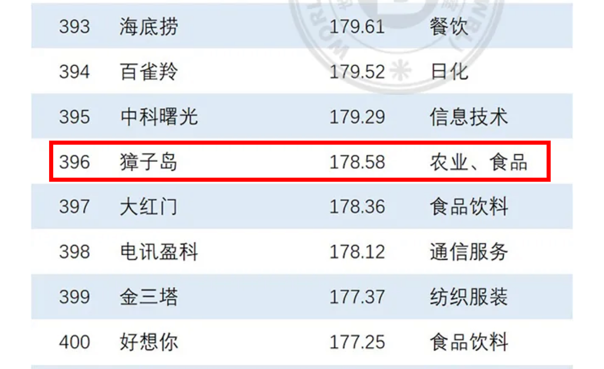 在本年度《中國500最具價值品牌》中,國家電網(wǎng)、中國工商銀行、海爾、中國石油、中國人壽位列前五。獐子島集團是唯一入選的專注海洋食品的企業(yè),同時也是大連市唯一上榜企業(yè),遼寧省僅有的兩家上榜企業(yè)之一,另一上榜企業(yè)是華潤雪花啤酒(中國)有限公司。據(jù)世界品牌實驗室分析,一個區(qū)域的競爭實力,主要取決于其比較優(yōu)勢,而品牌效益直接影響著地區(qū)比較優(yōu)勢的形成和發(fā)展。品牌是一個地區(qū)發(fā)展的重要標(biāo)志,品牌與區(qū)域經(jīng)濟的增長是相互聯(lián)動的。在衡量品牌的忠誠度時,世界品牌實驗室參考了我信品牌(iTrust Rating)的評級數(shù)據(jù);在衡量品牌的領(lǐng)導(dǎo)力特別是ESG(環(huán)境、社會和治理)評分時,參考了超級財經(jīng)(SuperFinance)的ESG數(shù)據(jù)庫。同時還借用了低碳國際(Carboncare International)對品牌企業(yè)碳排放的計量,以推動品牌添加“碳排放評分”標(biāo)簽。