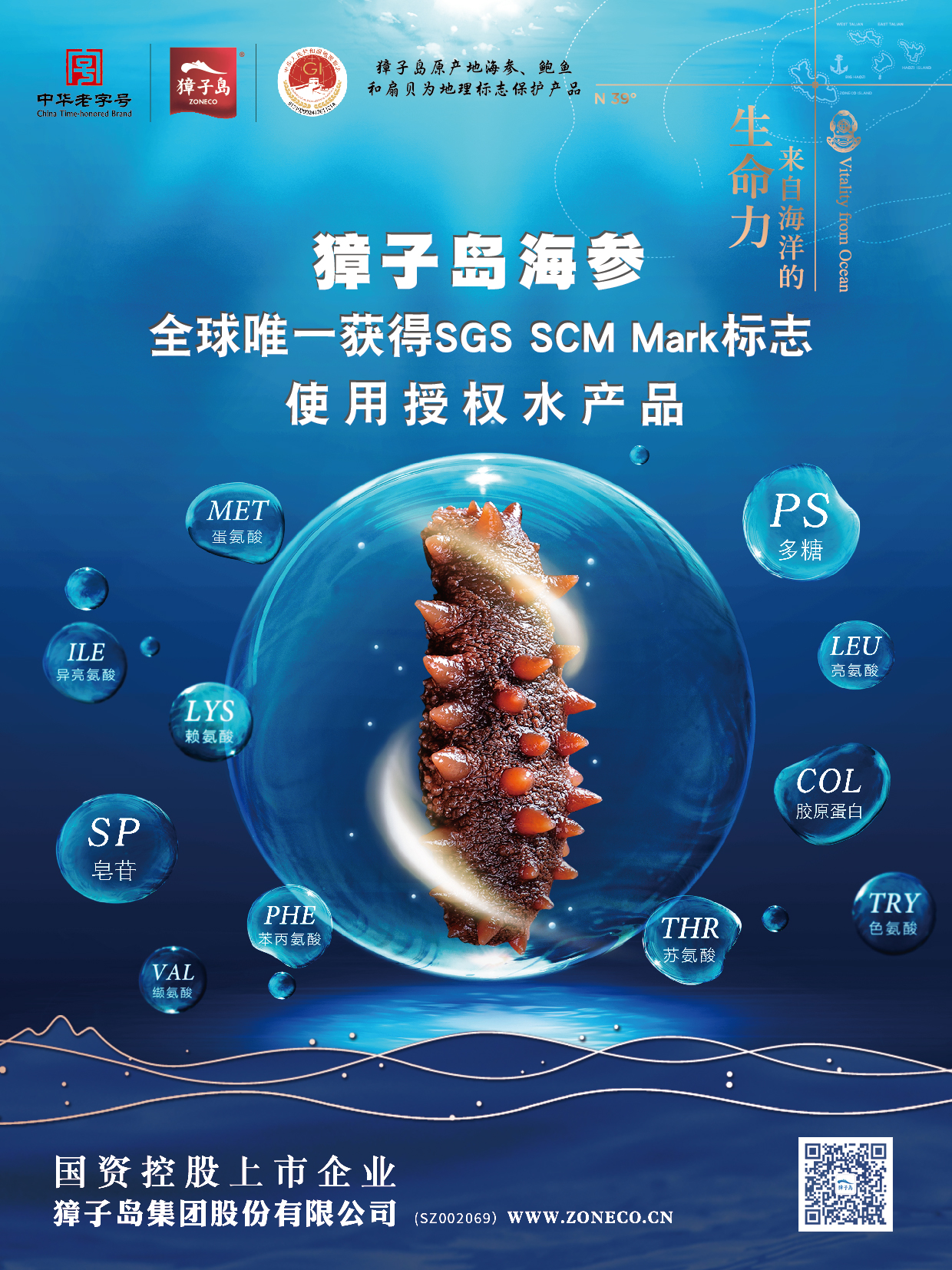 獐子島位于北緯39°、北黃海黃金海域,是國家級海洋牧場示范區(qū),憑借獨有的地理區(qū)位與水質(zhì)環(huán)境,實現(xiàn)了刺參、鮑魚、扇貝、海膽、海螺、生蠔、魚類、藻類等生物多樣性價值。獐子島海參、獐子島鮑魚、獐子島扇貝通過有機產(chǎn)品認(rèn)證,并獲得國家地理標(biāo)志保護產(chǎn)品。獐子島海參由國際檢驗機構(gòu)SGS進行供應(yīng)鏈全程監(jiān)控,通過了188項藥殘檢測,成為全國唯一、也是全球唯一獲得SGS