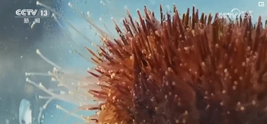 剛剛捕撈上來(lái)的海膽外殼是棕褐色,底部有尖尖硬硬的刺,又短又粗。但是海膽一進(jìn)水就不一樣了,刺周圍已經(jīng)出現(xiàn)軟軟的觸角,海膽就是靠這些觸角吸附在海水下。除了海膽,魚缸內(nèi)還有海參和藻類,其實(shí)這是在還原當(dāng)?shù)亓Ⅲw生態(tài)養(yǎng)殖模式。海帶、裙帶菜和龍須菜等藻類在凈化海水環(huán)境的同時(shí)還能作為海膽的餌料之一。