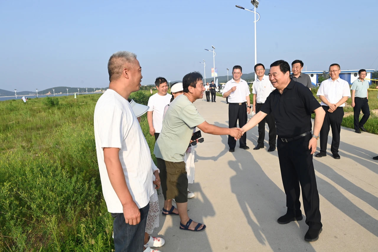 8月的大長山島飲牛灣旅游區(qū),海水湛藍(lán)、海沙潔凈,魚鷗翔集、風(fēng)光旖旎。郝鵬在海邊聽取長??h發(fā)展海島文旅產(chǎn)業(yè)、海釣產(chǎn)業(yè)情況匯報,與游客親切交流。