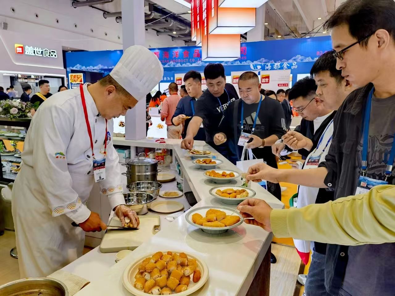 在獐子島集團特裝展位上,展示了來自北緯39°獐子島原產(chǎn)地的刺參、鮑魚、扇貝,以及大洋深海的三文魚、鱈魚、魷魚、鮐鲅、蝦等上百款養(yǎng)生食品、休閑食品、凍鮮食材和海鮮預(yù)制食品。特別是獐子島海參品類的全新升級尤為引人注目?!霸鷳B(tài) 源刺參”強化了其核心價值,并依托“原產(chǎn)地、原始基因、原生態(tài)海域、原始生長方式、原本形態(tài)、原初營養(yǎng)”的六原支撐體系,突顯了獐子島海參特有的自然稟賦和高端品質(zhì)。現(xiàn)場還特邀名廚演繹精湛廚藝,讓客商們體驗到獐子島海洋美食的獨特魅力和源自海洋原生態(tài)的營養(yǎng)美味。