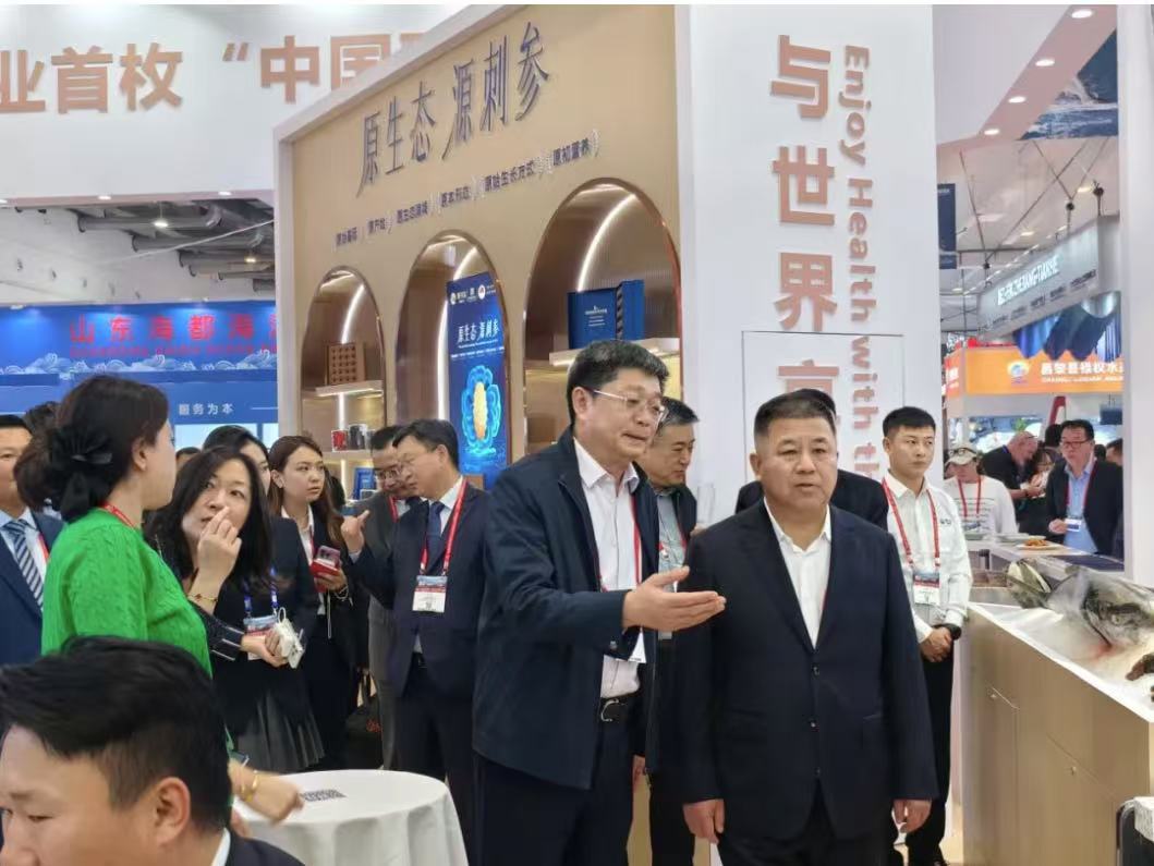 博覽會首日,大連市副市長楚天運親臨獐子島集團展位,在獐子島集團總裁戰(zhàn)成敏的陪同下考察指導(dǎo)。