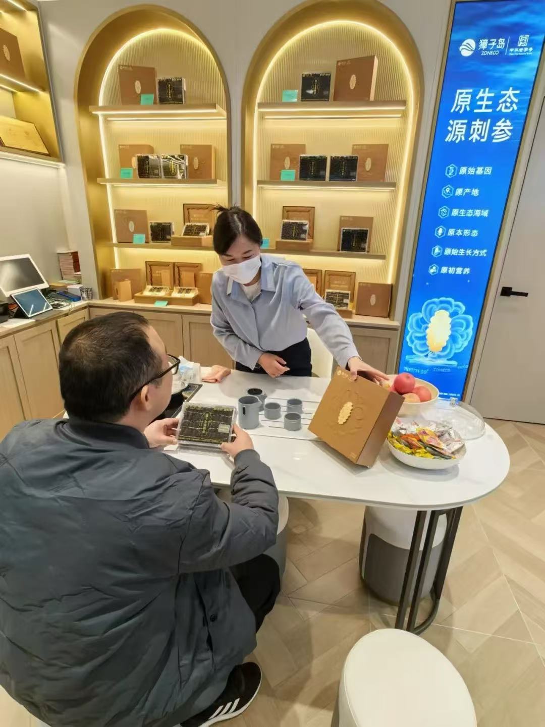 獐子島集團海參加盟中心總監(jiān)陳杰表示,獐子島源刺參終端店主色調為藍色,深度融入了豐富的海洋文化內涵,淋漓盡致地展現(xiàn)出獐子島海納百川的廣闊品牌胸懷以及蓬勃向上、生生不息的發(fā)展活力。同時,店內空間布局精巧合理,極大地提升了選購的便捷性與高效性。深圳印力中心店作為獐子島源刺參首家加盟店的開設,拉開了獐子島源刺參在全國招商的序幕,現(xiàn)有的300多家獐子島海參銷售終端也將陸續(xù)升級為獐子島源刺參銷售終端。品牌升級后的銷售終端將配有集團統(tǒng)一下發(fā)的門店編號,具有一定的市場識別度,消費者也可以更加放心地選擇獐子島源刺參作為日常進補。