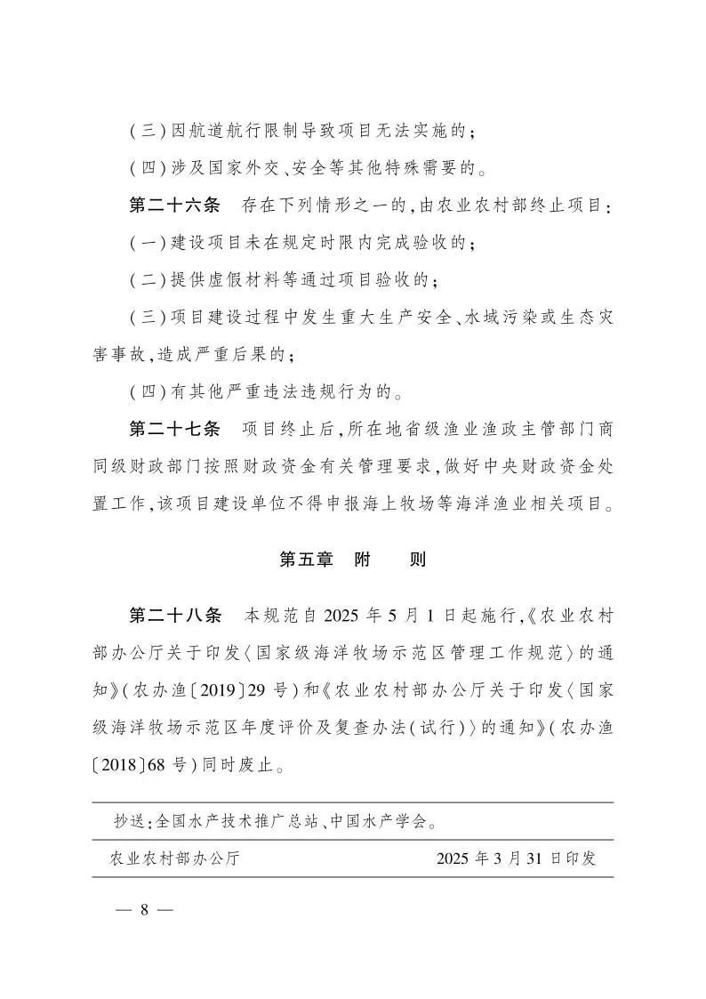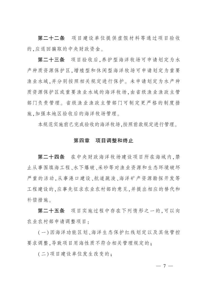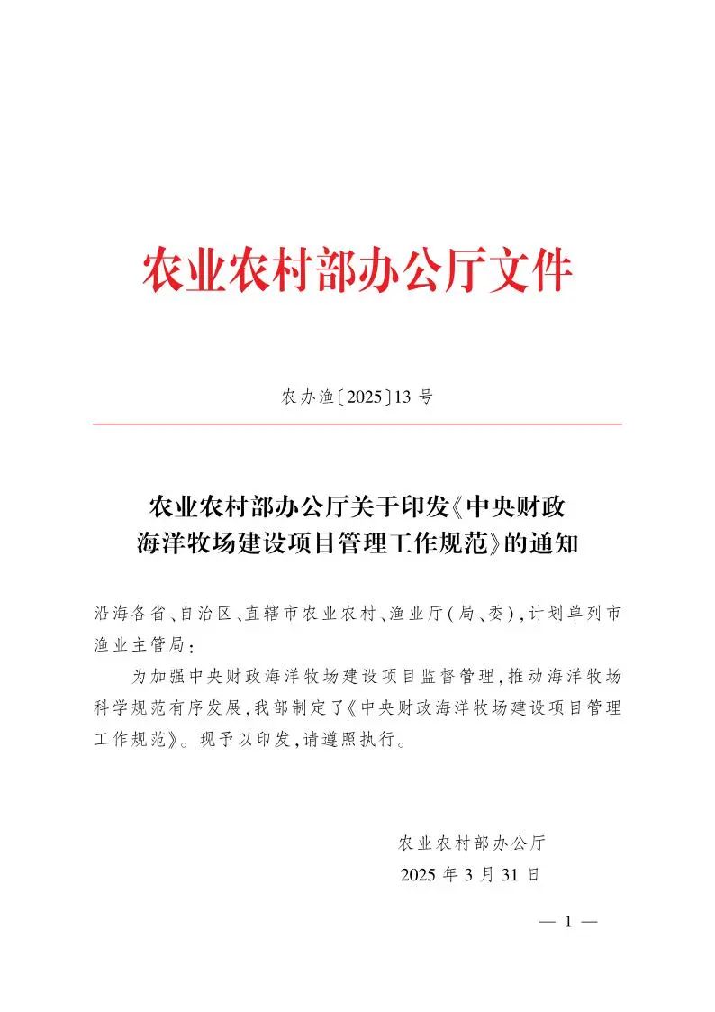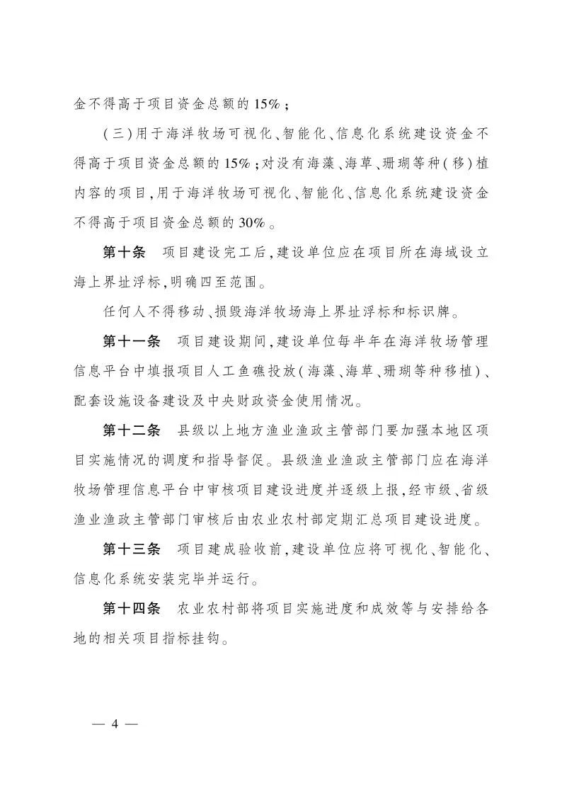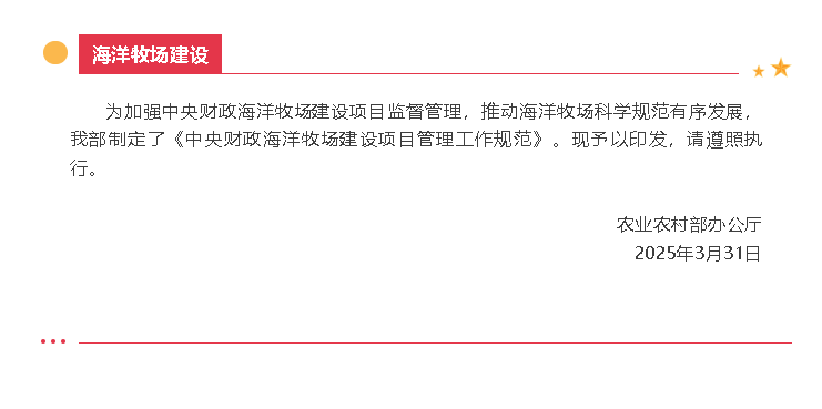農(nóng)業(yè)農(nóng)村部辦公廳關于印發(fā)《中央財政海洋牧場建設項目管理工作規(guī)范》的通知