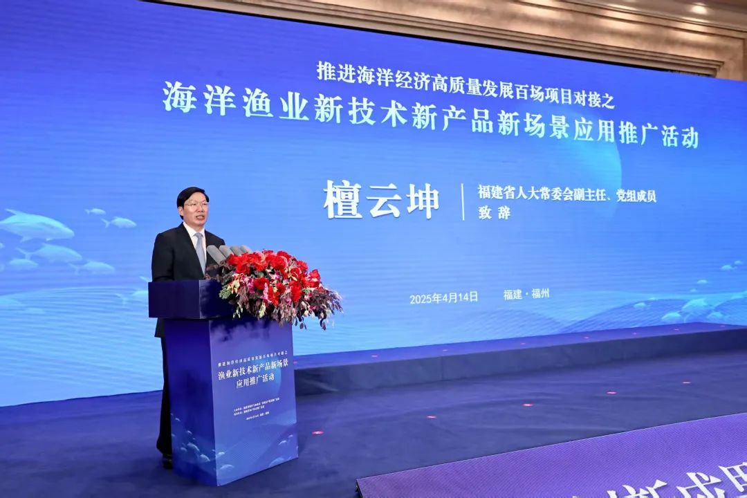 為推動(dòng)漁業(yè)科技創(chuàng)新與產(chǎn)業(yè)創(chuàng)新深度融合,促進(jìn)漁業(yè)科技成果轉(zhuǎn)化落地,4月14日,全國(guó)水產(chǎn)技術(shù)推廣總站和福建省海洋與漁業(yè)局在福州市舉辦漁業(yè)“三新”成果應(yīng)用推廣活動(dòng)。福建省人大常委會(huì)副主任檀云坤出席活動(dòng)并講話,福建省人民政府副省長(zhǎng)王金福會(huì)見參會(huì)重要嘉賓,全國(guó)水產(chǎn)技術(shù)推廣總站站長(zhǎng)韓剛和福建省海洋與漁業(yè)局局長(zhǎng)顏志煌分別致辭,中國(guó)工程院院士劉少軍、薛長(zhǎng)湖分別作主旨報(bào)告。
