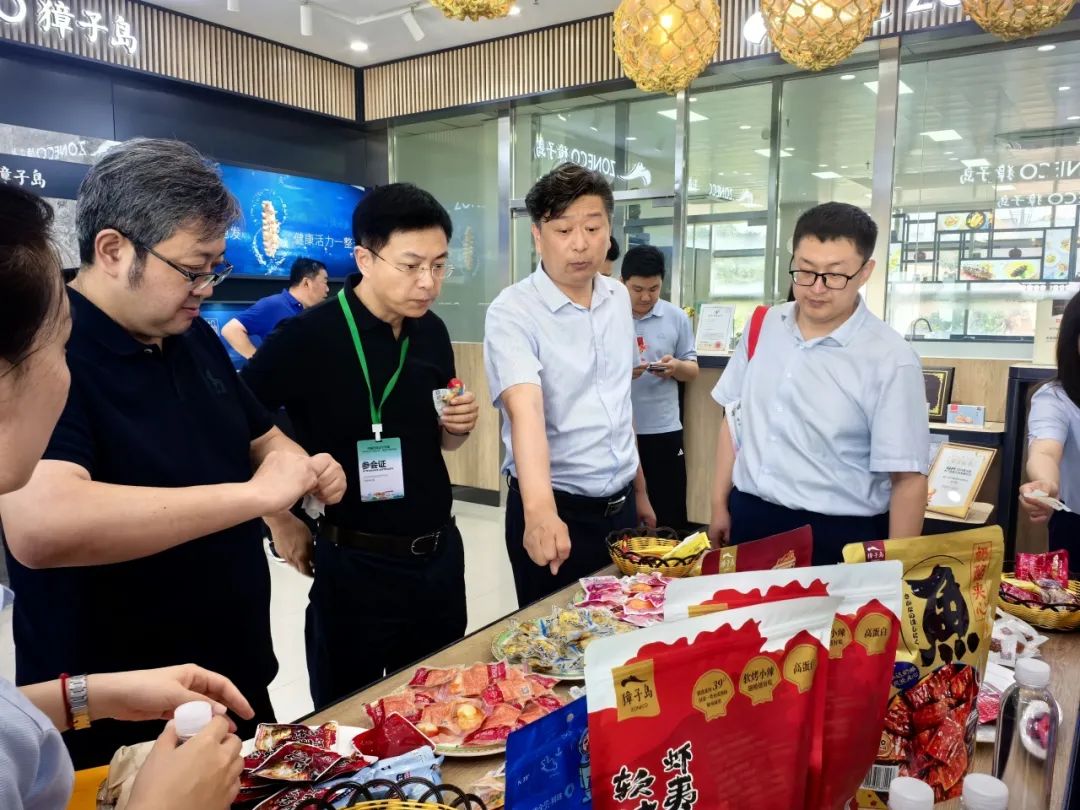 大會(huì)結(jié)束后,在獐子島集團(tuán)股份有限公司董事路珂和副總裁劉明的陪同下,與會(huì)領(lǐng)導(dǎo)和嘉賓前往獐子島集團(tuán)金貝廣場(chǎng)進(jìn)行參觀考察。大家先后參觀了休閑食品生產(chǎn)車(chē)間、海參加工車(chē)間,詳細(xì)了解了獐子島品牌源刺參系列產(chǎn)品、預(yù)制食品和休閑食品等,并就進(jìn)一步深化央地合作、推動(dòng)遼品出遼,與企業(yè)進(jìn)行了深入座談交流。