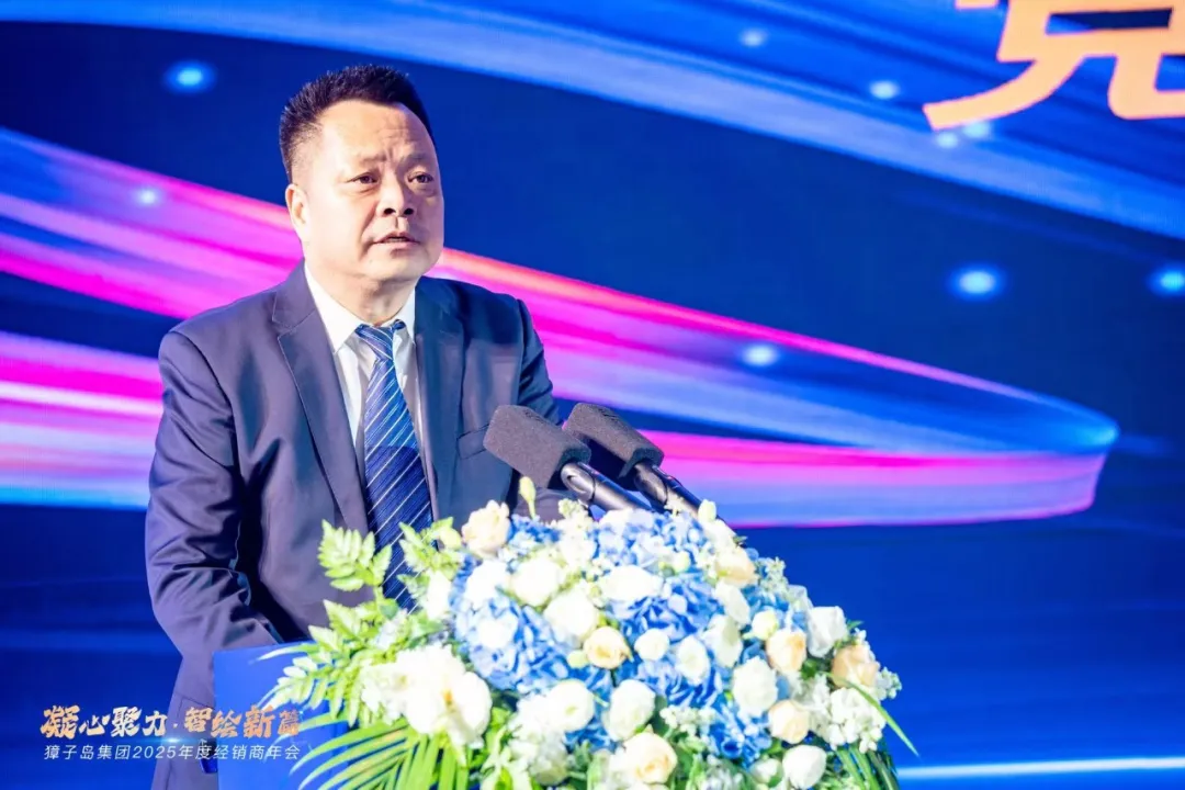 會議伊始,大連獐子島海洋發(fā)展集團黨委書記、董事長、獐子島集團董事長劉德偉致辭。他代表海發(fā)集團向蒞臨“凝心聚力·智繪新篇——2025經(jīng)銷商年會”的各位嘉賓表示熱烈歡迎與誠摯感謝,并向長期關(guān)心支持獐子島集團發(fā)展的經(jīng)銷商伙伴及社會各界人士致以崇高敬意。