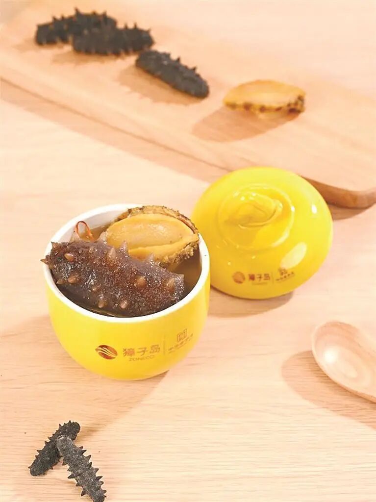 海參佛跳墻將大連海參與鮑魚、花膠、瑤柱等高端食材搭配,經(jīng)慢火熬煮后封裝,成為加熱即享的滋補大餐;小米海參則專注滋補老人和孩子,以養(yǎng)胃的小米粥為基底,搭配切塊海參,清淡鮮香。