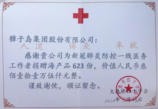 大連市紅十字會(huì)秘書(shū)長(zhǎng)朱曉昕表示,新冠病毒疫情發(fā)生后,以獐子島集團(tuán)為代表的大連企業(yè)積極奉獻(xiàn)愛(ài)心,詮釋了我市企業(yè)的高度責(zé)任和擔(dān)當(dāng),他們?cè)诜e極為抗擊疫情做貢獻(xiàn)。