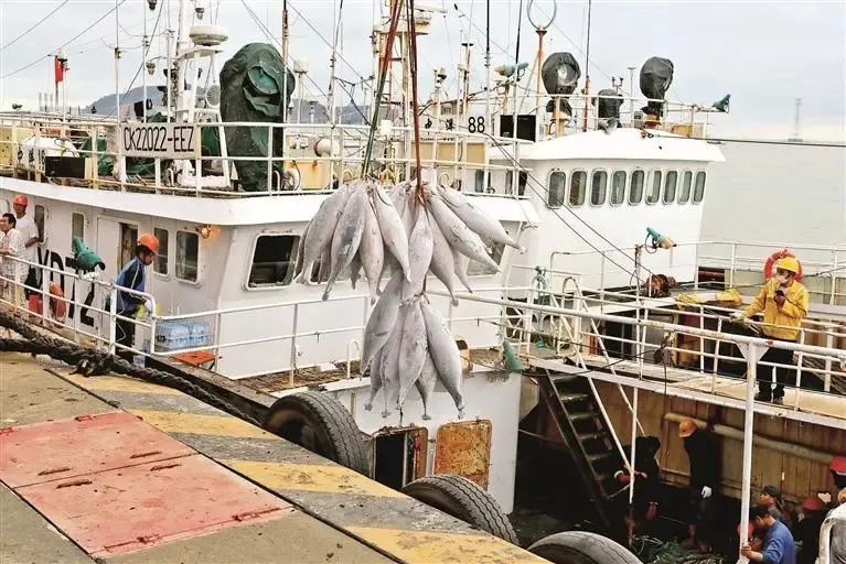 漁船作業(yè)范圍包括太平洋、西南大西洋、印度洋公海以及太平洋島國(guó)、東南亞、西亞、非洲等沿海國(guó)家專屬經(jīng)濟(jì)區(qū),初步形成了以金槍魚延繩釣為主、圍拖網(wǎng)作業(yè)為輔的生產(chǎn)體系。2021年金槍魚捕撈量1.09萬(wàn)噸,占全省的78.2%,以高價(jià)值的冰鮮金槍魚為主,在全國(guó)占據(jù)重要地位。