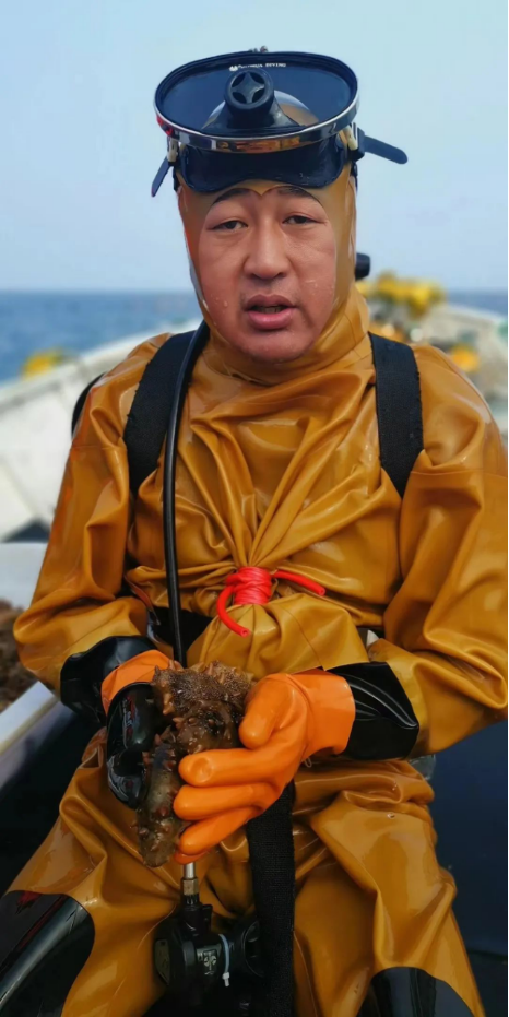 嘉賓與媒體紛紛登上船只,前往獐子島馬牙灘海域,親眼見證20余名潛水員從10艘玻璃鋼采捕船上魚躍入海,進(jìn)行海參采捕。