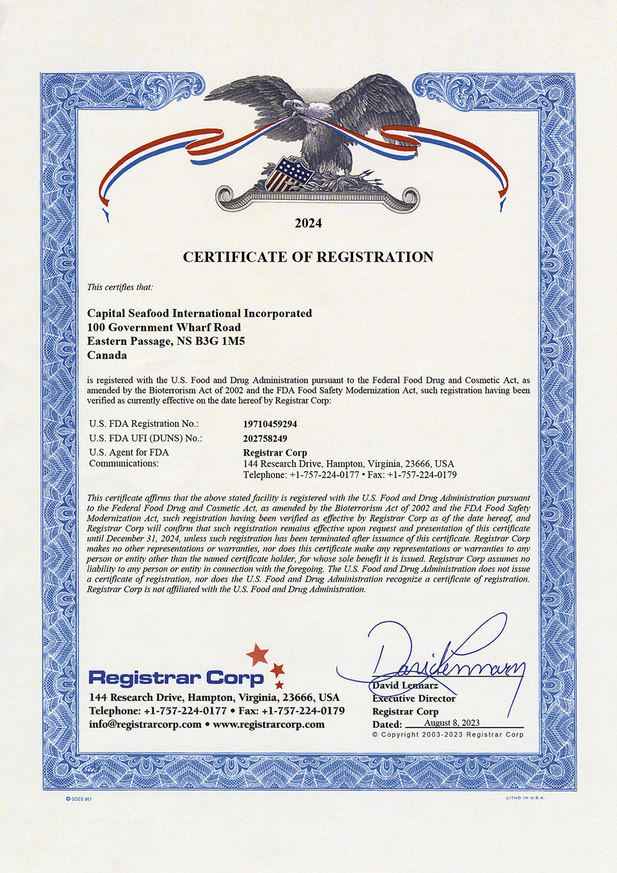 Capital Seafood International Incorporated